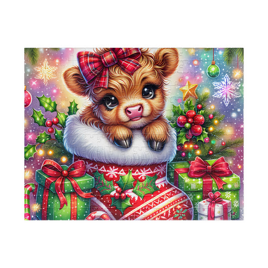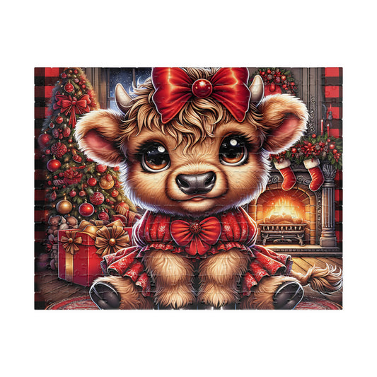Christmas Cow Puzzle – Cute Holiday Jigsaw, Family Fun Activity, Gift for Kids & Adults, Festive Home Decor