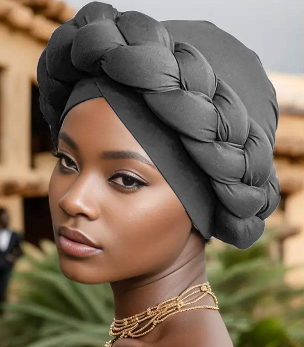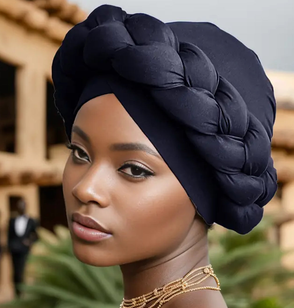 Big Braid Twist Turban Cap Stylish Solid Color Head Wraps for Women Comfortable Lightweight Bonnet, Perfect for Ramadan, Hijab, Chemo Hats - Soft & Breathable, One-Size-Fits-Most